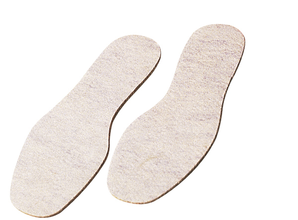 Einlegesohle aus grauem Filzmaterial - sorgt für angenehm trockenes Klima und warme Füße, speziell in Arbeitsschuhen mit Stahlzwischensohle.