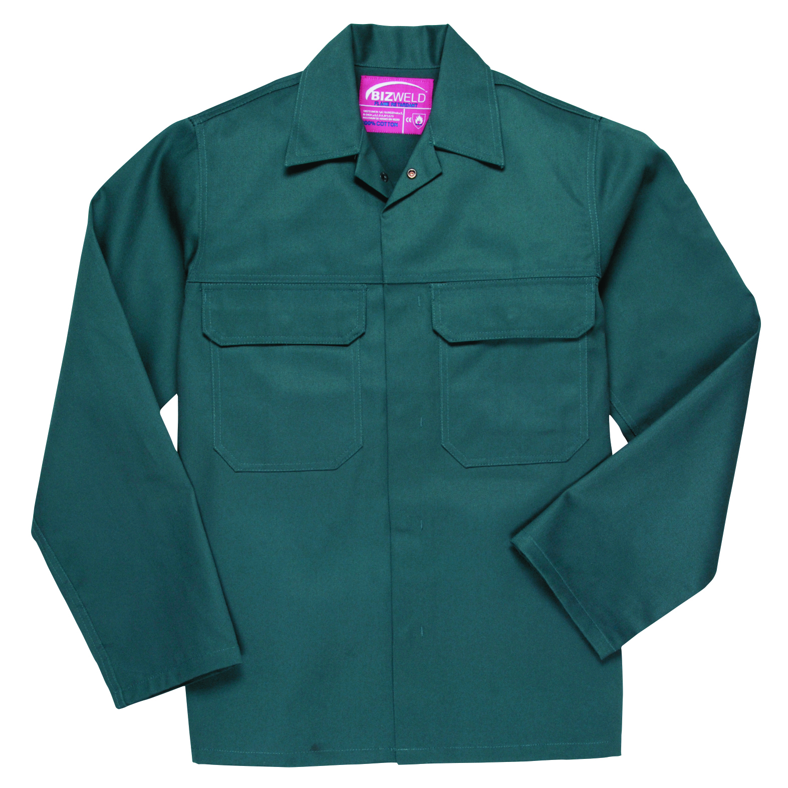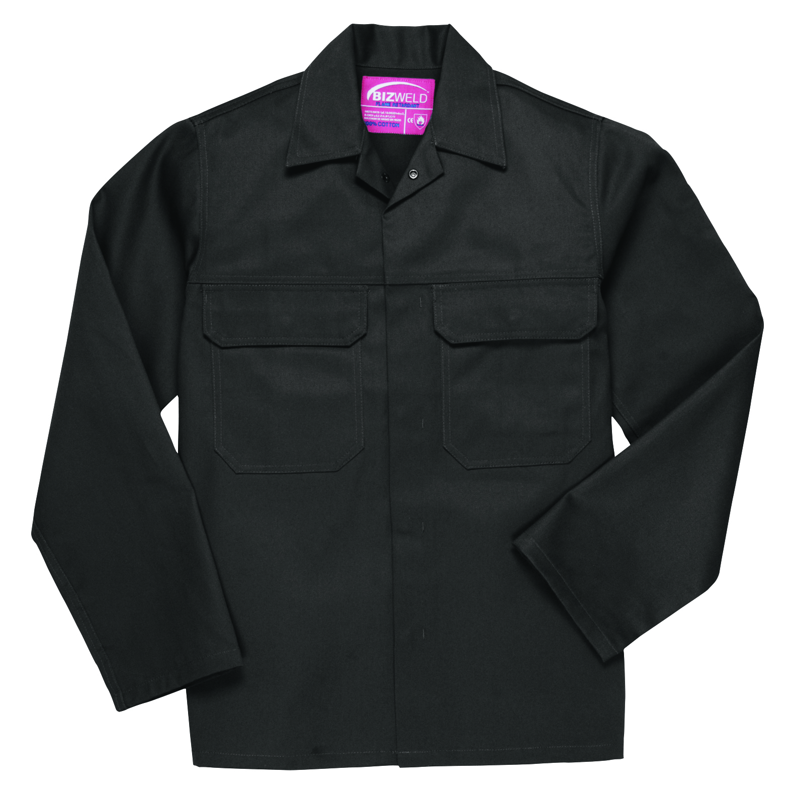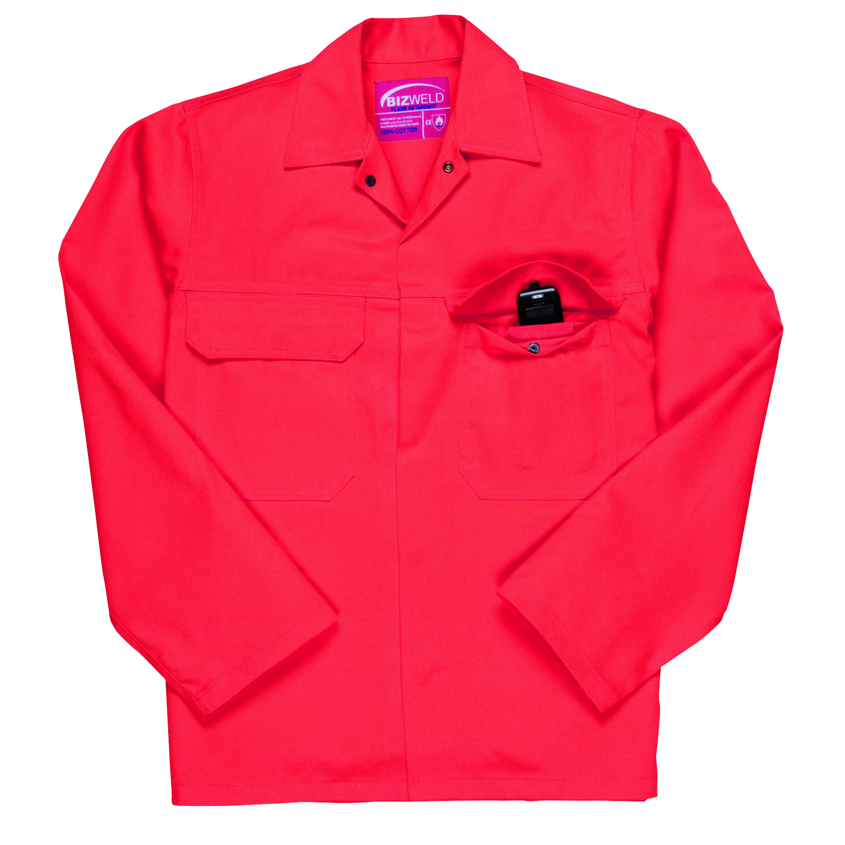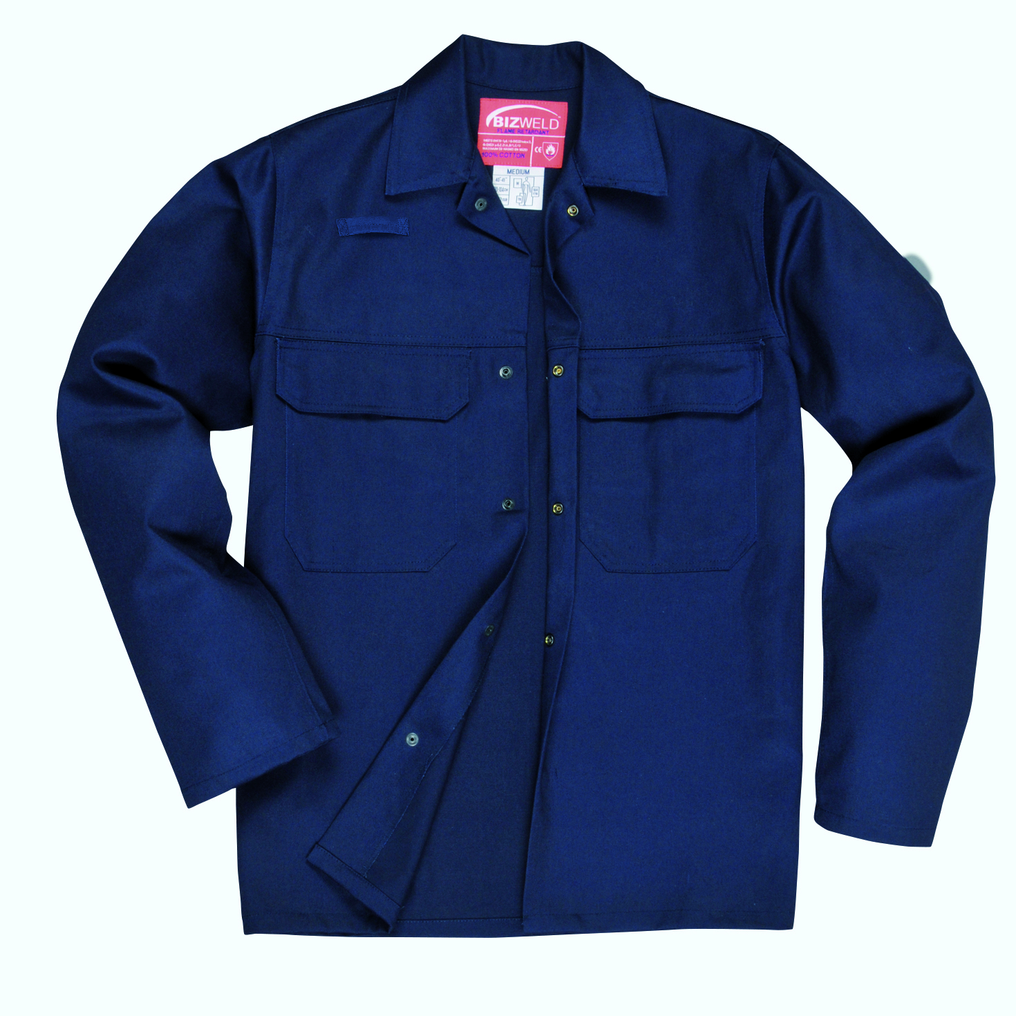 Diese Jacken bestehen zu 100 % aus flammhemmend ausgerüsteter Baumwolle und vereinen Schutz und Tragekomfort für den Anwender. Sicherheits-Druckknöpfe auf der Vordrseite, zwei Brusttaschen mit Patte sowie eine verdeckte Handytasche. Ärmelsaum mit Druckknöpfen verstellbar.