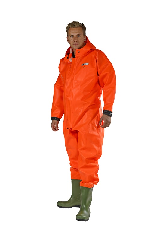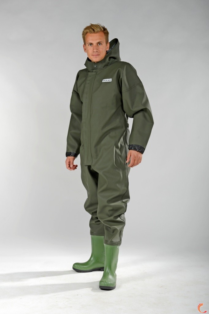 Dieser Spezialanzug von Ocean, oft auch als "Watanzug" bezeichnet ist die perfekte Kombination aus Nässeschutzanzug und Wathose. Mit den fest angebrachten Stiefeln und dem Spezialverschluss ist der Anzug bis zum Hals wasserdicht. Der perfekte Schutz für Arbeiten im brusttiefen Wasser, in Kanälen und Abwasseranlagen, in der Fischzucht oder Tankreinigung. Das Anzugmaterial ist - wie alles aus der HD-Serie natürlich beständig gegen Fette, Öle, Blut und Reinigungsmittel und sehr abriebfest.