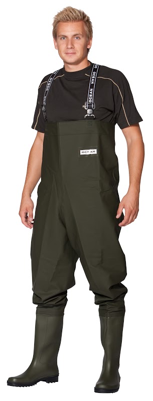 Wie der Name bereits vermuten lässt: Die Wathose für gehobene Ansprüche und besondere Belastung. Die Ocean Nova Luxe Wathose besteht aus einem pvc-beschichtetem Polyestergewebe, an das die PVC-Stiefel wasserdicht angeschweißt sind. Verstellbare Elastic-Träger und eine kleine Innentasche runden die Ausstattung ab. Die Stärke des Hosenmaterials beträgt ca. 700 gr / m² und ist somit auch für grobe Arbeiten wie z.B. im Baugewerbe, bei Feuerwehr und Hilfsdiensten oder der gewerblichen Kanalreinigung bestens geeignet.